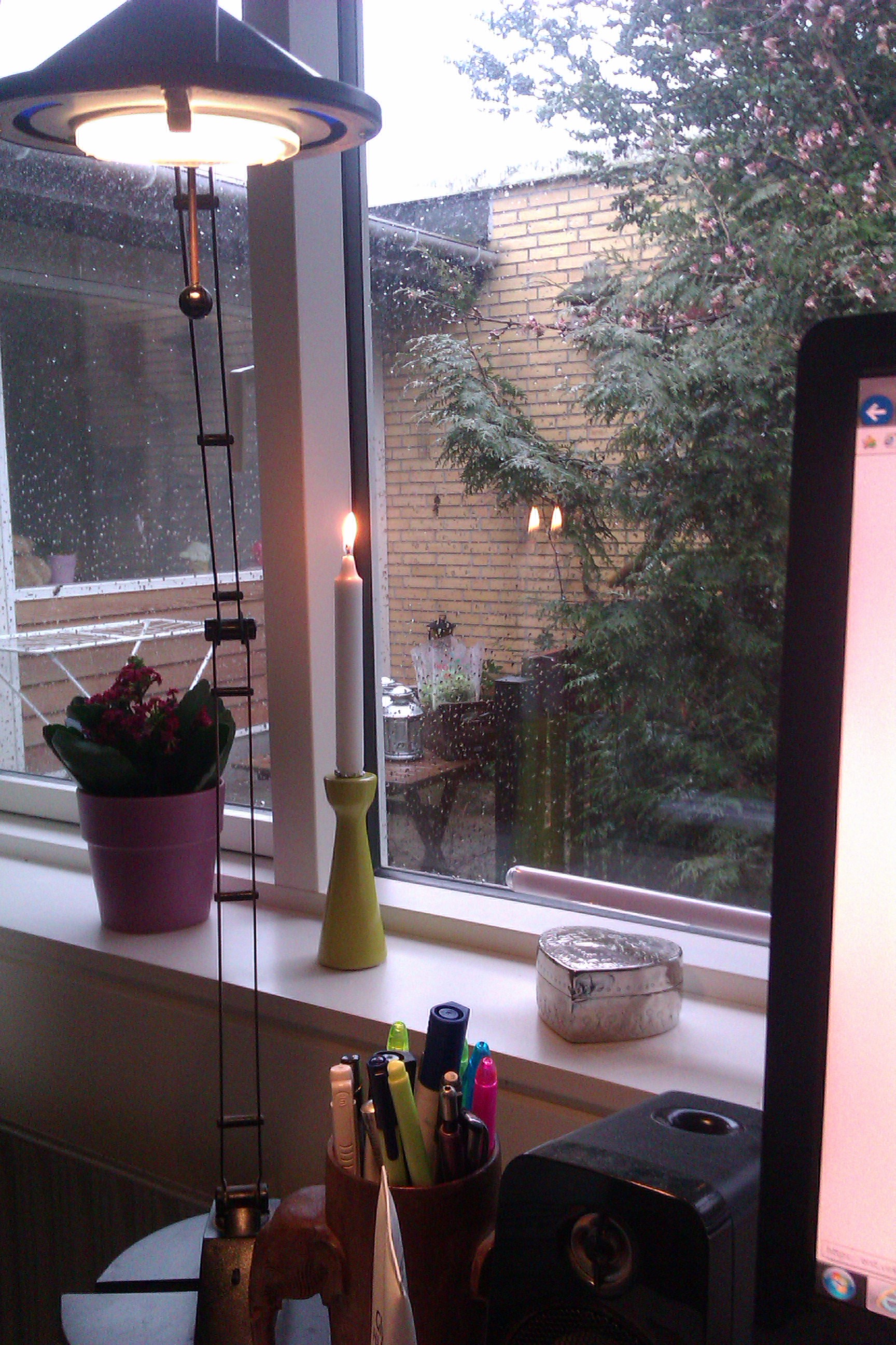 Når alt kommer til alt, er det vigtigste (for mig) alligevel at der er stille og at jeg (og hunden) er alene. Sådan skriver jeg bedst. Nogle gange skal jeg lytte til musik eller kigge lidt på Pinterest for at komme i gear til en scene eller hele bogen, men som regel er total stilhed bedst. Og det er der i dette skønne kontor, godt nok afbrudt lidt af alle de skønne små fugle, der kvidrer som om det var forår. Deres humør smitter – så jeg må hellere åbne Scrivener og komme videre med mit næste projekt.