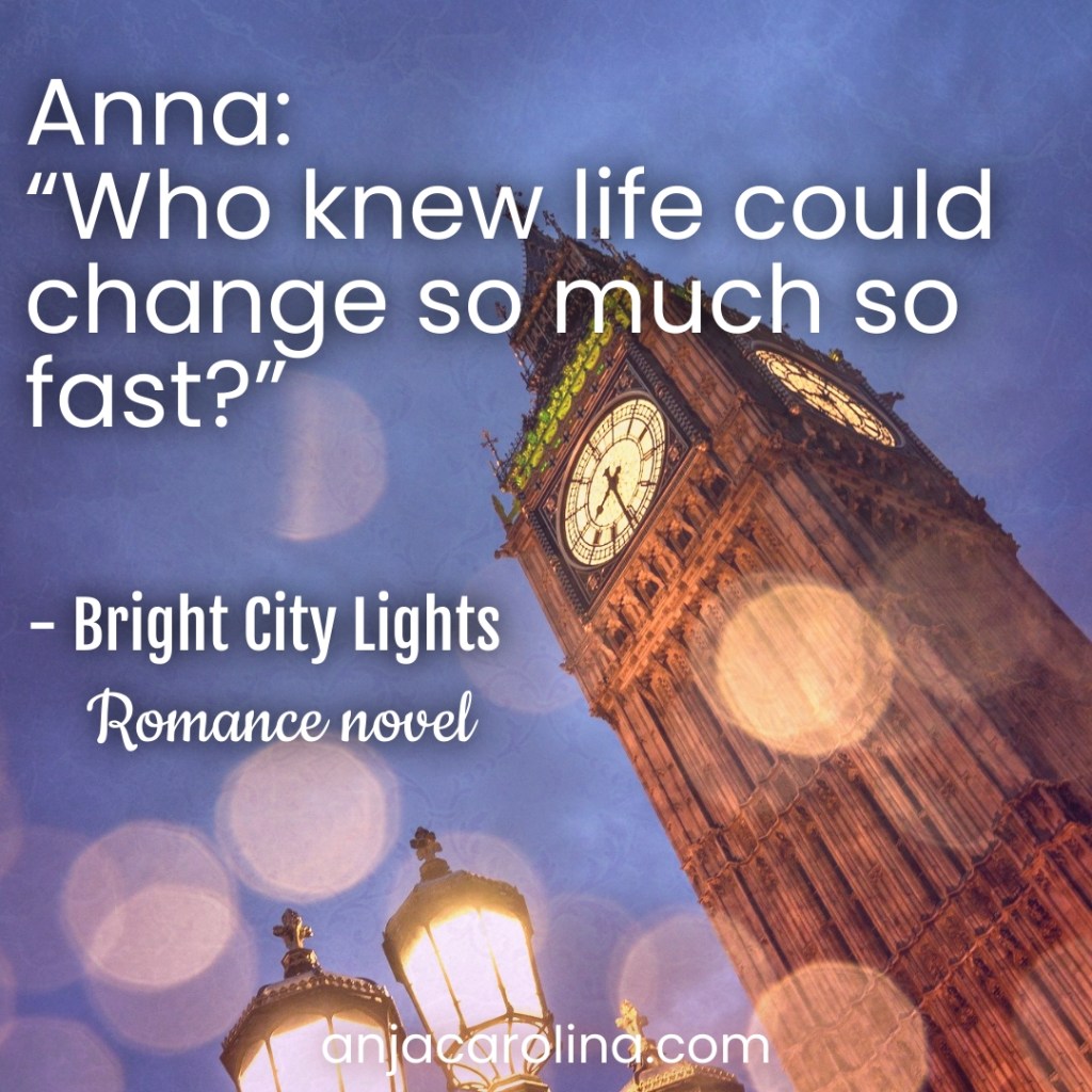 Bright City Lights er en romance der handler om danske Anna der møder den britiske filmstjerne Robert Masters, og det vender hendes liv fuldstændigt på hovedet. Hun troede at hun havde styr på livet og kærligheden, men så møder hun den fem år yngre Rob, og i løbet af kort tid er ingenting som det plejer. Bright City Lights er både en romance-historie med følelser på spil og heftig passion mellem Anna og Rob, men det er også en historie om hvordan det vi drømmer om i livet, ikke altid kommer i den indpakning vi troede den ville komme i.
